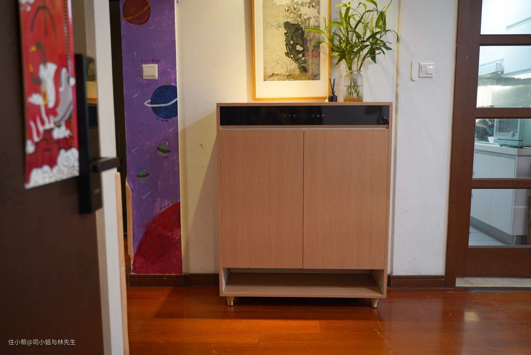 入手8H Free智能鞋柜的时候正好众筹阶段,看到这款颜值不错的鞋柜的时候第一时间给老公申请换一个鞋柜,家里的鞋柜丢在门口,里面早就破烂不堪,早就想换个鞋柜了。家里预留放鞋柜的地方我都安排好了。
