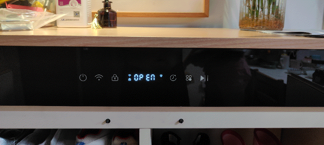 8H Free智能鞋柜除了支持远程APP操作之外,还支持大屏幕触摸,LED点阵的控制面板呈黑色的设计。