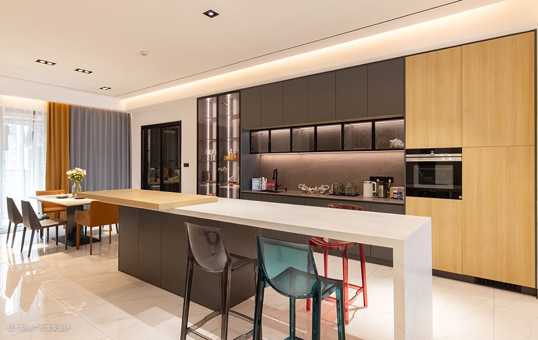 在家居、厨房中,岩板能应用的场景也非常多,如岛台台面、餐桌、茶几、橱柜、灶台、电视柜、面板等。12mm-20mm的岩板适合运用到橱柜、岛台台面、餐桌桌面;9mm-11mm的岩板适合运用到茶几、电视柜这些比较小型的家具中;更小的3mm-6mm会常作为墙面装饰来使用。知道了岩板使用规格的范围,那怎样才能挑选出优质的岩板呢?