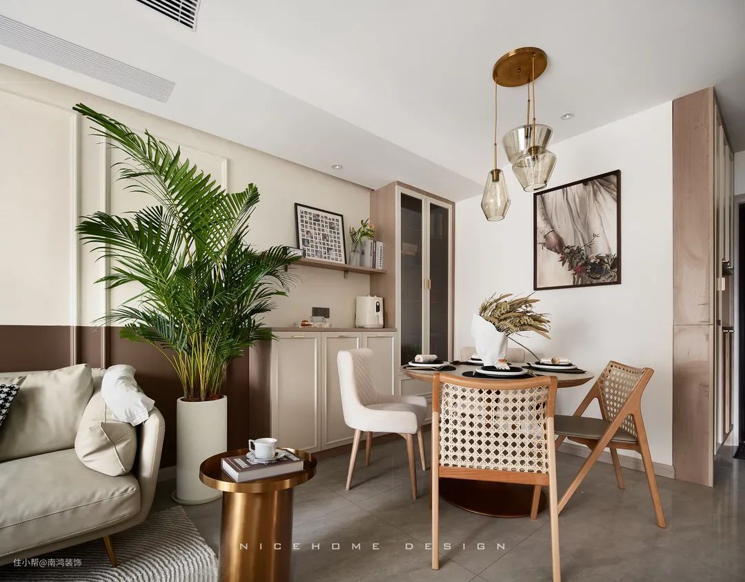 同理,客厅与餐厅都比较紧凑的话,不如就将二者做成一体式设计,功能放在同一个空间里,视野会因此变得开阔许多。