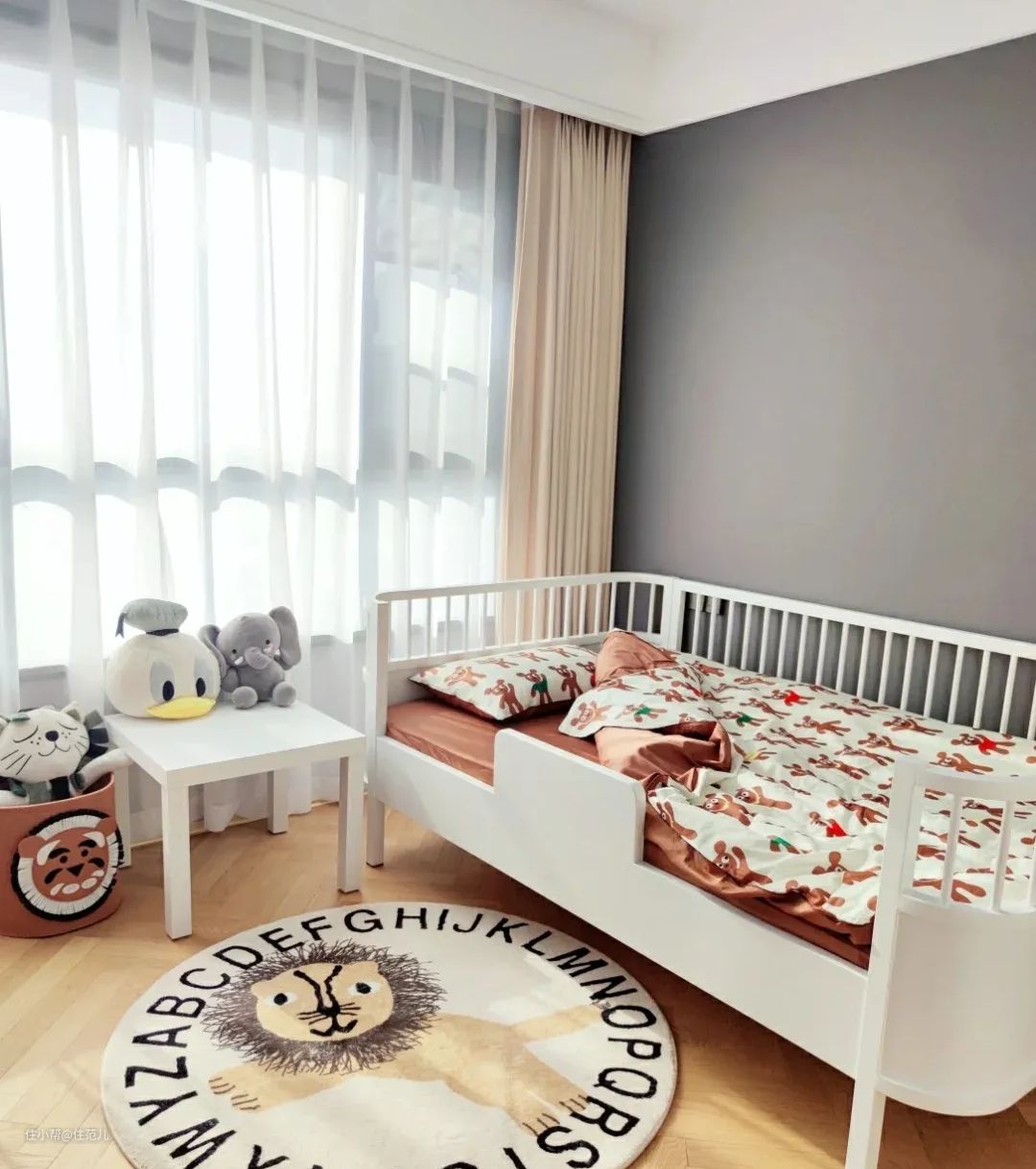 和父母同住期间甚至可以先不买床,留更多空间给孩子自由活动。