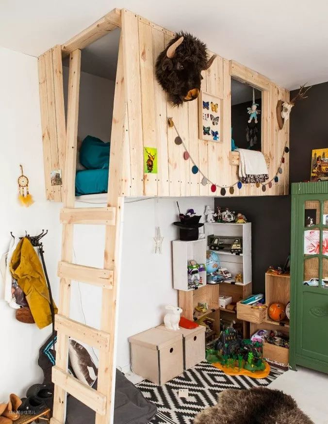 非常喜欢树屋可以做下层带床的款式,上层空间玩耍,下层床居住。
