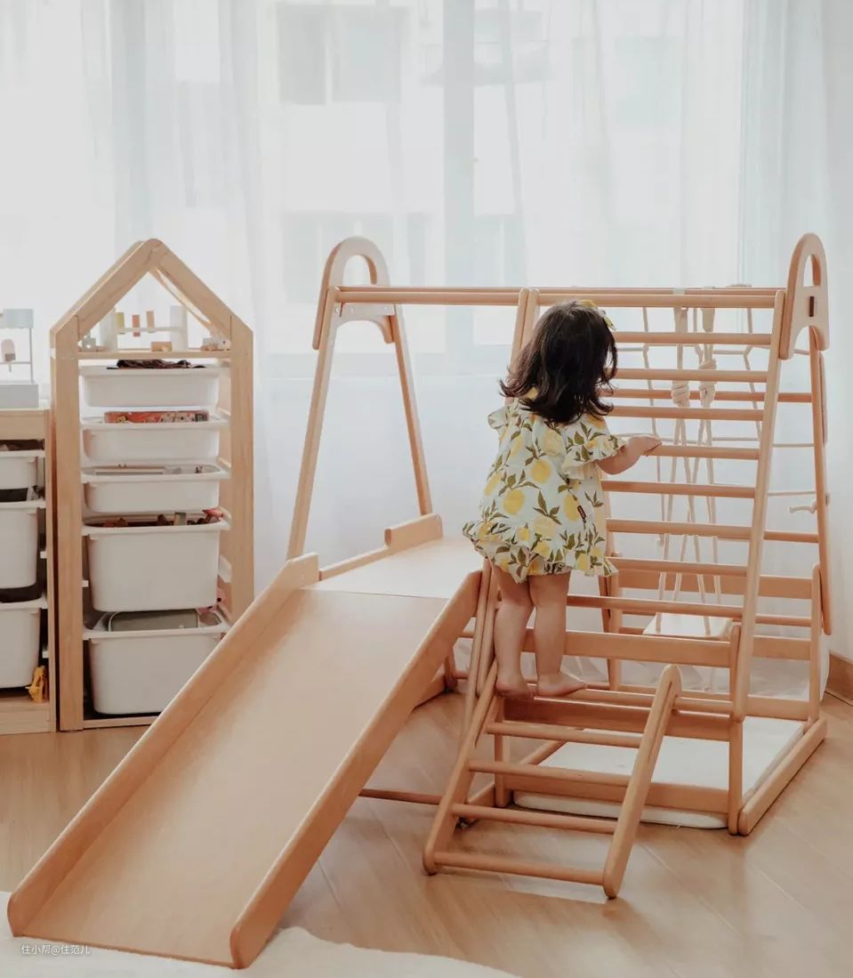 爬梯选择斜梯或梯柜型,更利于孩子攀爬,梯柜注意边角,选择圆弧收边的款式。