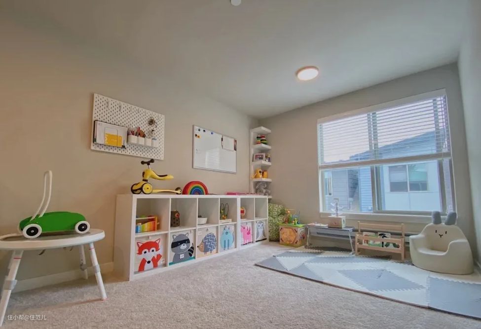 儿童房内设置爬行垫/地毯+玩具+围栏,以家长的看护和陪伴为主,培养孩子的认知能力。