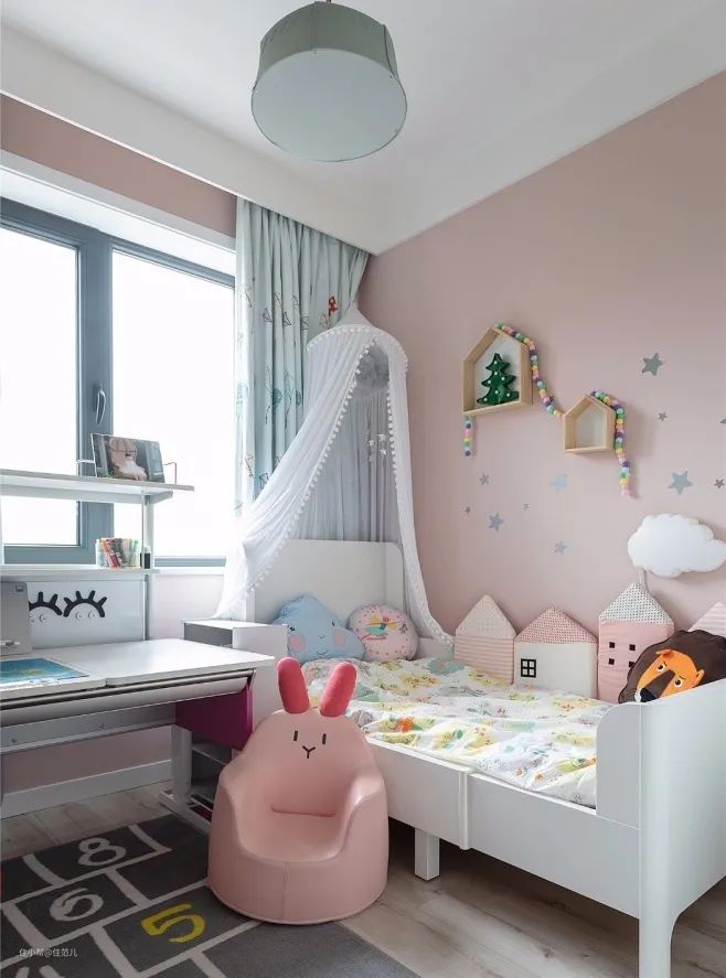 软装布置可以让孩子参与,如物品的款式、颜色、图案、形状,增加参与感孩子更喜欢。