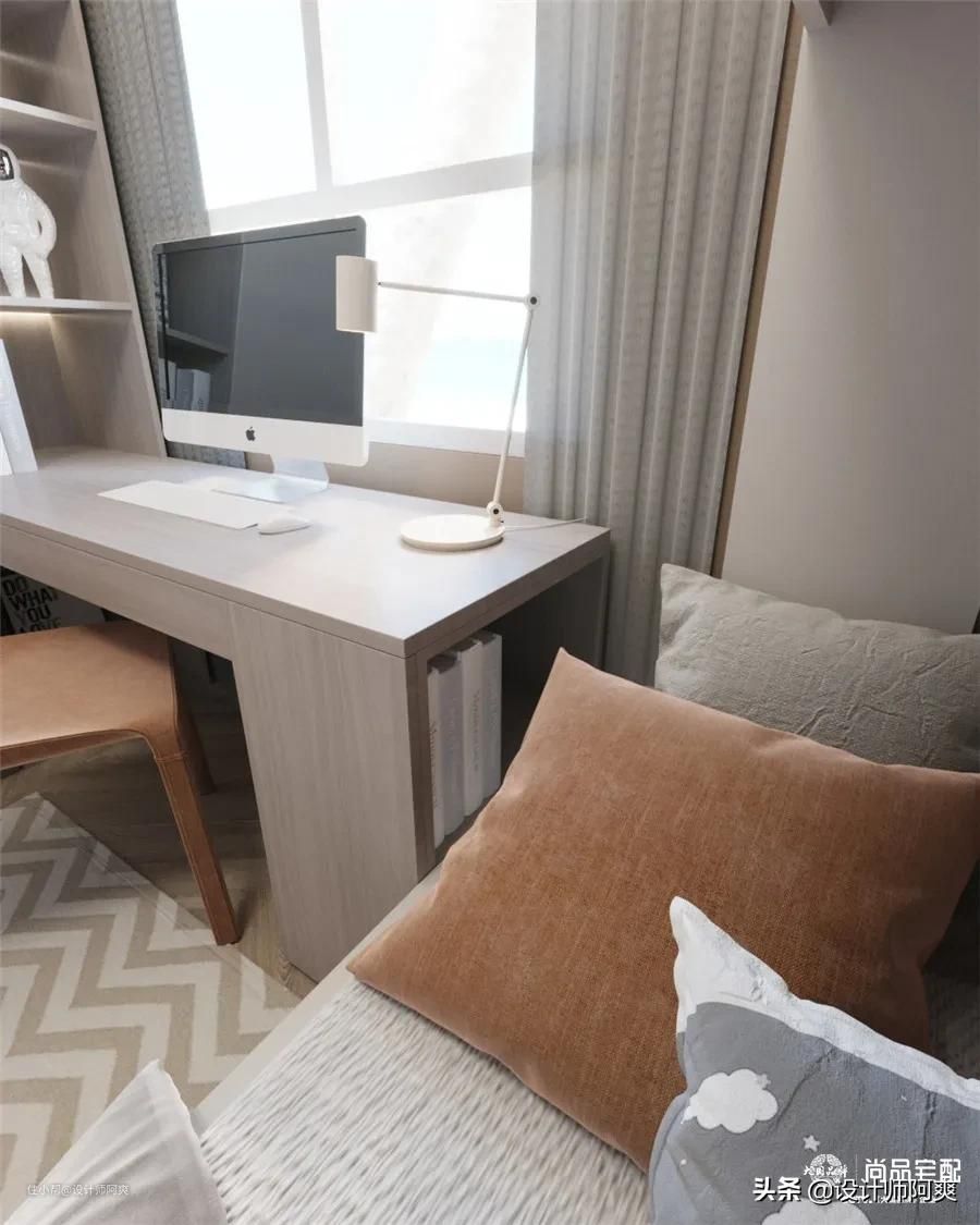 ▲掩门衣柜+书桌副柜组合,空间紧凑。巧妙利用书桌侧面空间,置入床头柜功能,可以放睡前读物。