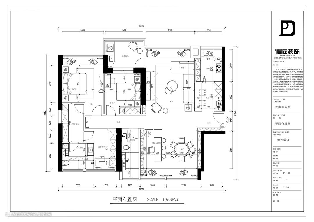 深圳香山美墅五期云颂,装修案例,户型图165平,新房装修