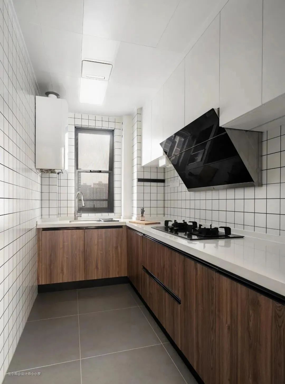 厨房是潮湿又重油污的空间,所以墙面往往都需要贴瓷砖,有瓷砖就会有缝隙,可以做一下美缝,不仅美观,也会更耐油污好打理