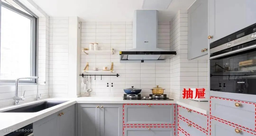 所以,为了拿取方便,地柜建议多抽屉的形式