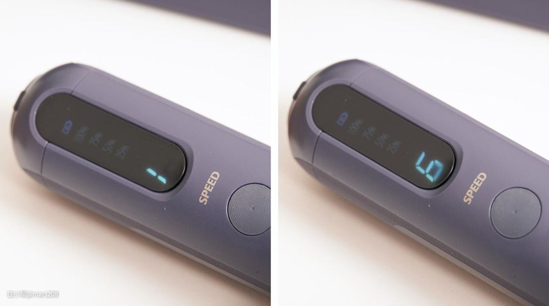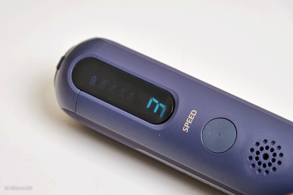 在主机后部设有电量和档位显示,使用时,瞄一眼就对当前设备状态做到心中有数。在其边上还有独立的档位调速开关和散热孔。