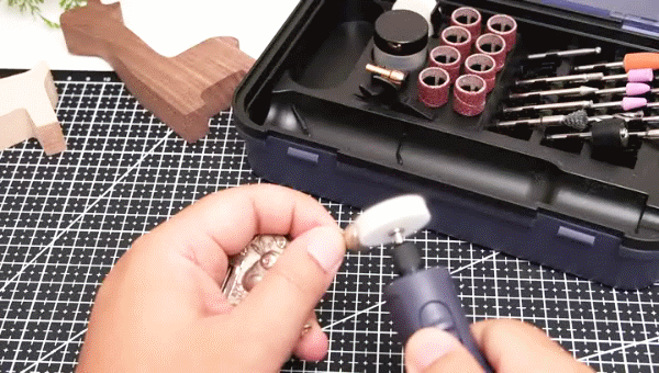 对于一些预加工的木质小摆件,可以使用砂圈对一些边角进行修整。