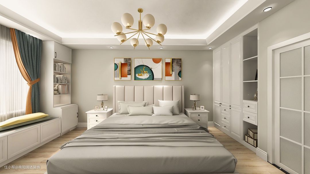 舒服的睡眠环境是衡量睡眠质量的唯一标准,简单的组合柜搭配复古鹅蛋灯 下班回到家 温和的灯光下,一张大大的床映入眼球;让原本疲惫的身躯迫不及待的就想躺上去,灰褐色的床单可以让人更快的进入梦乡。