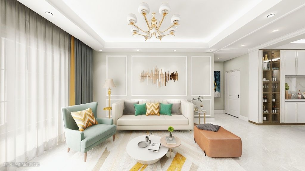 客厅作为休闲娱乐的第二空间 自然舒适感也是少不了的,沙发采用混搭的特色,增加整体环境上的跳跃感,窗户设计成采光极好的落地窗搭配科技感的电动窗帘,闲暇之余的午后可以品茶作乐;傍晚可欣赏城市外的车水马龙和霓虹闪烁的光彩夜景,高处的景色可谓是一览无余。