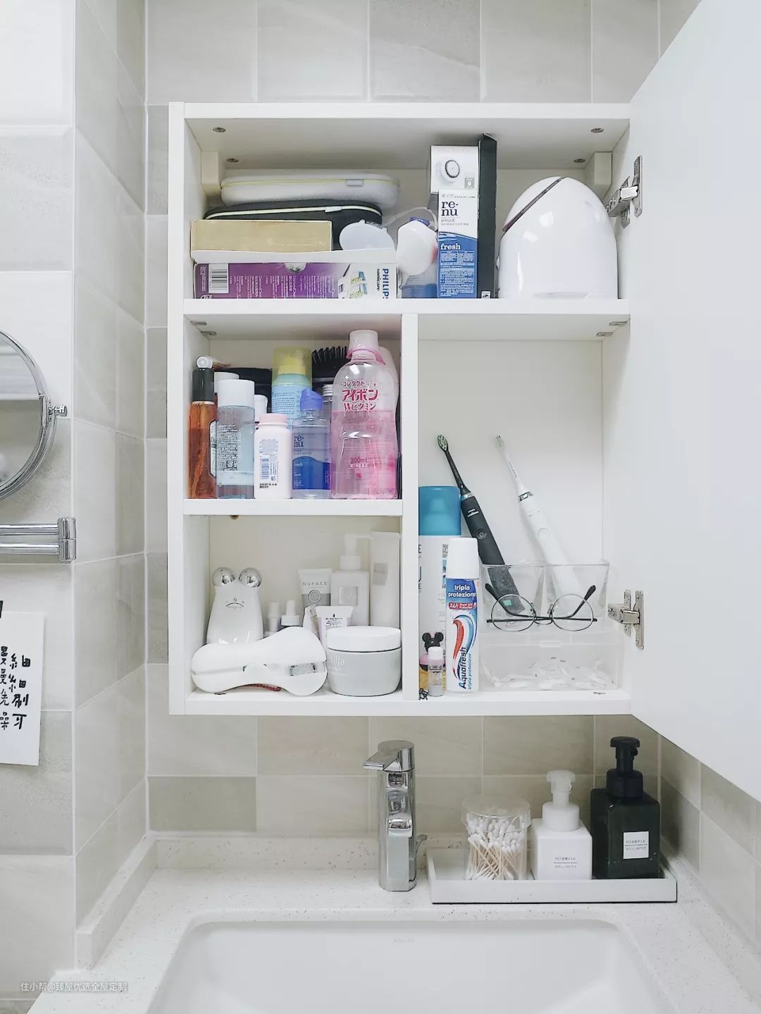 卫生间也是需要储物的,尤其是一些常用的洗漱用品,拿取非常方便。