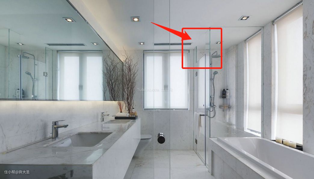无论是成品淋浴房还是定制的,切记不要为了颜值将淋浴房做到顶,起码开扇的位置不要通顶