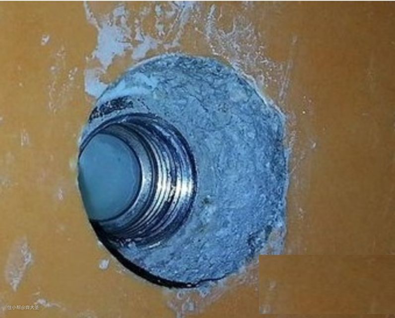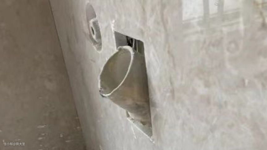尤其是在预留出水点时候,瓦工需要留意好瓷砖的厚度,免得出现下图这种情况,龙头的螺纹够不到安装不上……