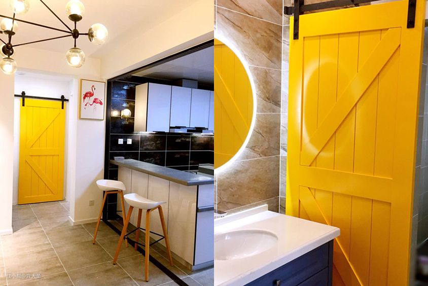 但是由于谷仓门安装后,与墙壁之间有缝隙,所以隔音效果和密封效果并不好,有人觉得尴尬不适合安装在卫生间,但是如果家里不常来客人又恰好是暗卫的话,谷仓门的这一特性反而成了优势。