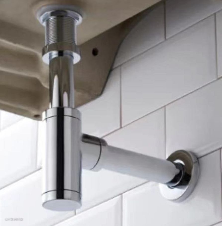 但是其实标准的墙排做法是:90度出墙+专用P型下水↓