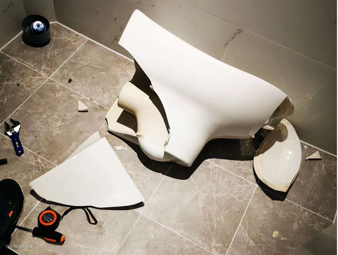 重则马桶掉落,屎尿横飞↓(这里要说明,安装规范的话,壁挂马桶承重绝对没问题!)