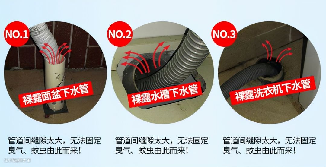 对于排水管直插下水道里的,比如厨房水槽下水管、洗衣机排水管等,防臭是最棘手的问题。