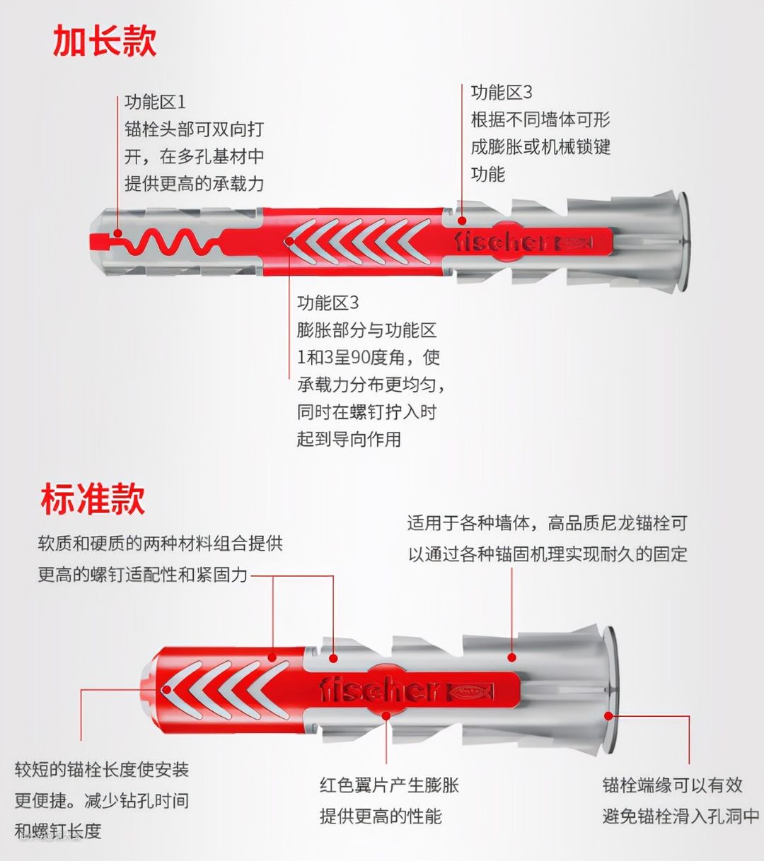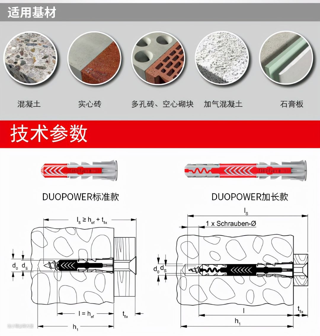 如果是空心砖或轻质墙想要安装的话,建议使用慧鱼的尼龙锚栓↓