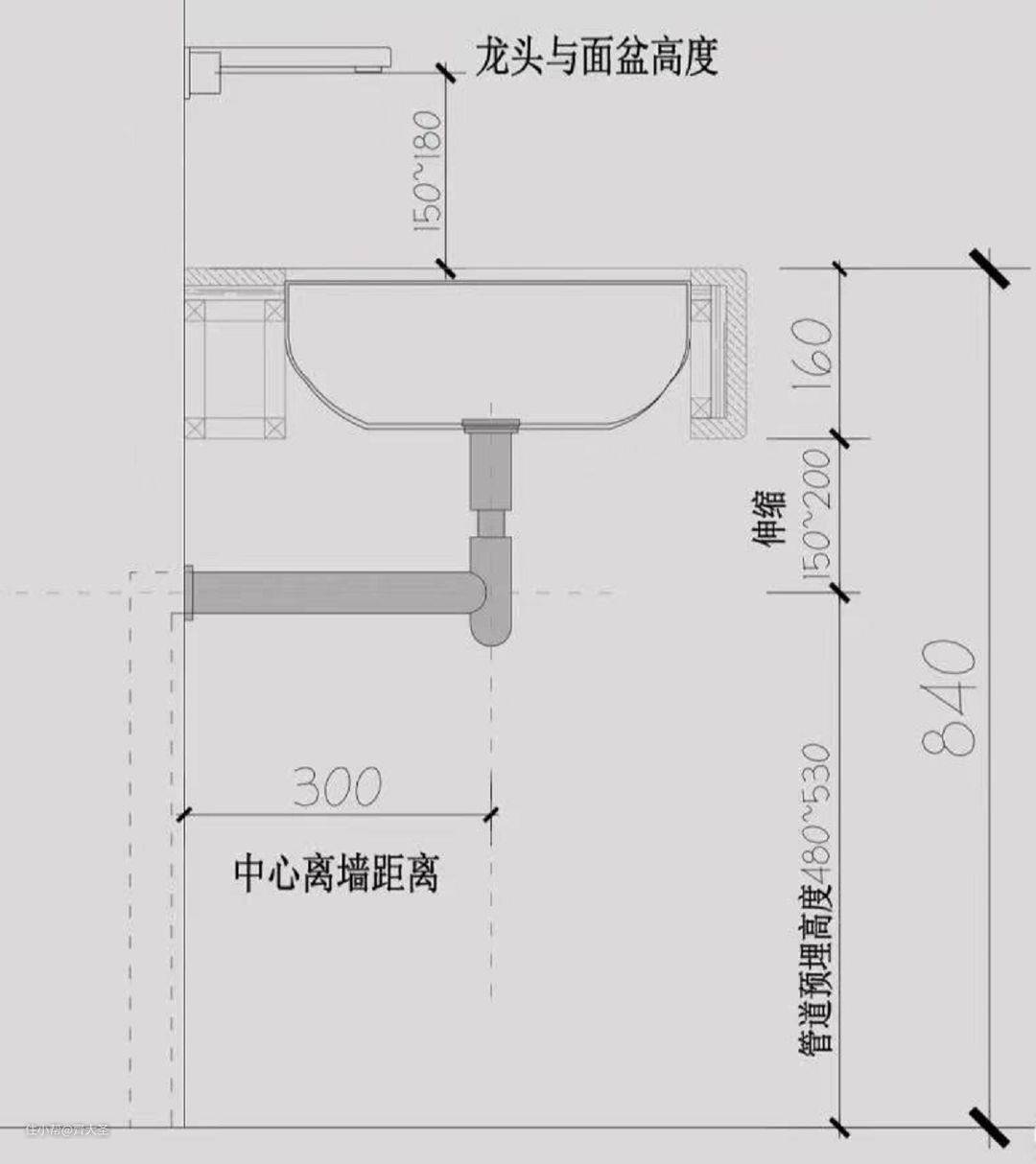 毛坯房卫生间在计算尺寸布置其它物品时,要记得去除瓷砖铺贴后的厚度。一般情况下厚度=瓷砖厚度(一般为1.8cm)+粘接层(厚贴1.4-1.8cm/薄贴0.3-0.8cm)