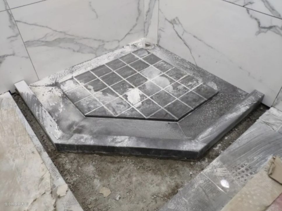 如果你的选择跟我一样,选择预埋的话,那么记得在瓦工入场前备好,直接网购就行,很便宜,我用的0.9m+0.9m,L型的,由于淋浴房是黑色,所以石基也选的黑色,一共才50多,还帮忙切好,实体店一般张嘴就一两百了。