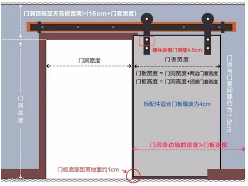 谷仓门是一种吊轨移门,它完全靠墙面上边的吊柜承受整个门的重量,所以固定吊轨的墙面要能够承重,一般不建议石膏板或者轻质墙安装谷仓门。