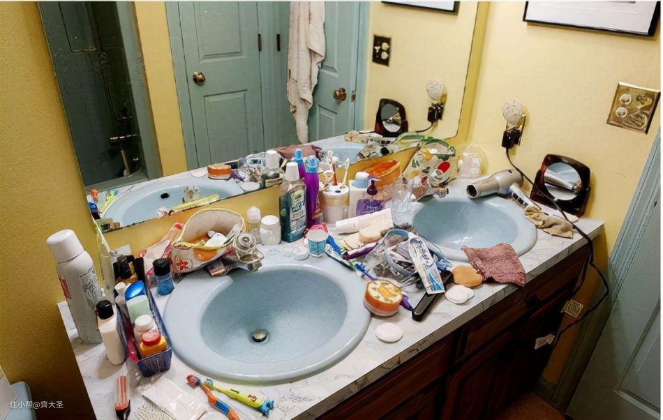 但是如果你家只有一个卫生间的话,你就会发现,用不了多久台面上就会堆满各种化妆品、洗面奶、牙膏、口杯、面巾纸、棉签……