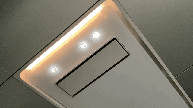 如果直接安在淋浴区上方,风吹在身上,会加速水分的蒸发,带走身体的热量,最终导致越洗越冷,提升出风温度的话又会增加能耗。最好装在卫生间的中心位置,有助于热空气的循环,从而均匀提升整个卫生间的温度,体感也更舒适↓