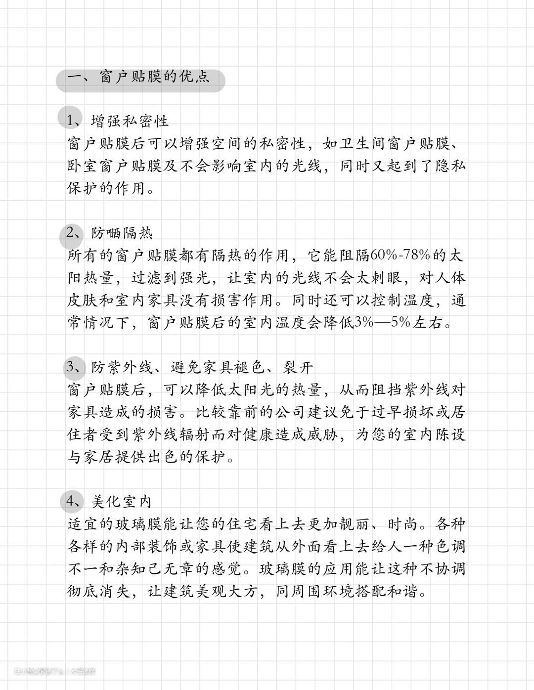 室内窗户贴膜有隔热、抗紫外线的作用,对于我们的家居生活提供了很大的方便,随着窗户贴膜款式的多样化。