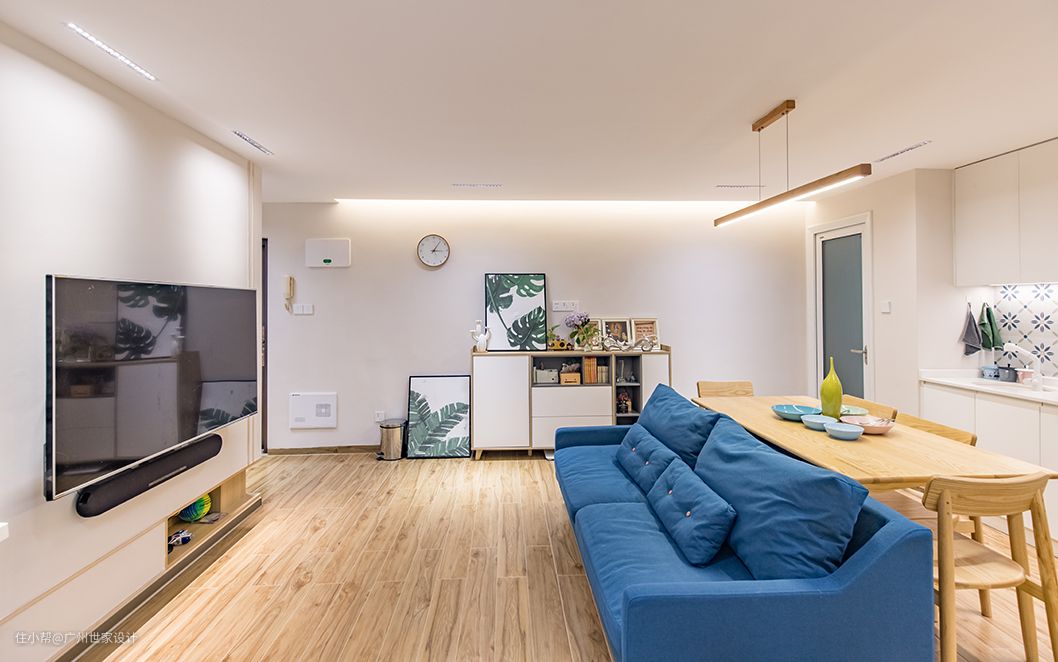 (3)层高:无主灯设计中最常用到的灯具就是射灯,射灯的安装方法分为明装、暗装两种。暗装射灯是需要吊顶的,一般吊顶的高度是5cm-7cm,会导致层高被压缩。如果家里层高不高的,最好不要采用暗装的方法,明装会更适合,能够代替吊灯的功能,也不会压缩层高。
