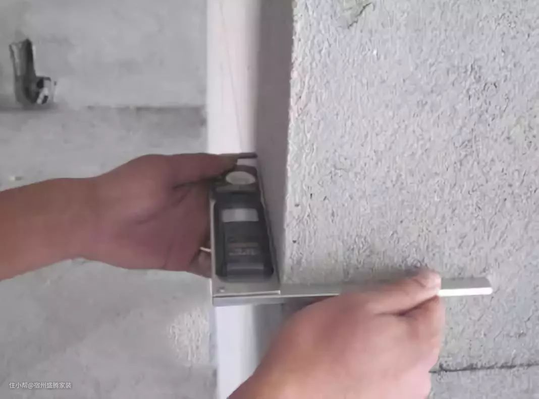 2、垂直找平方,垂直找平方的工作,相对于找顺平方会更复杂一些,不止要及时处理墙面的平方整度,而且还需要保证墙面地面的双直角,其将石膏粘成饼状作为施工基点,并且两个基点之间的距离要在2M以上,每个基点的最高点连线都要用水平方仪校准,这样才可以保持垂直。