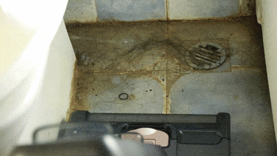 边冲水、边拿刷子刷、边用洗地机把污水吸走,这样清洁卫生间时,就无需再用扫把,一直把水往下水道拱了,排水很迅速,全程手都没有碰到污水。