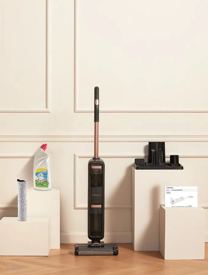 西屋这款洗地机接近上下90°,桌底、床底、沙发下,都能平放伸进去。