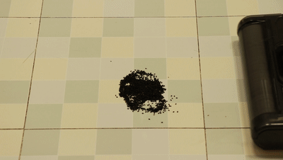 平地上的小颗粒、非圆形物体,如黑芝麻、米粒,基本一次就能吸干净,圆如绿豆、黄豆,因为太滑溜溜,前面几颗容易被弹飞。