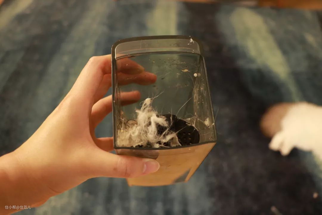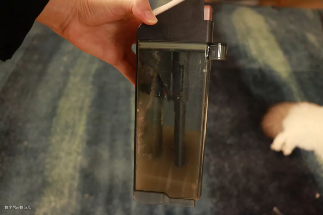 污水箱清理也比较方便,如果吸过油污,加一点洗洁精摇晃一下,就干干净净了。
