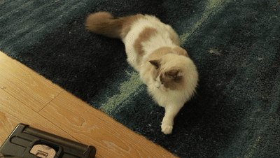 ▼刚清洁完,猫就准确无误躺到了干净的区域打滚