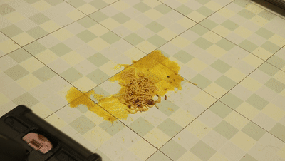 对付湿垃圾不愧是洗地机的绝活,当看到一滩面条和油腻腻的面汤,一瞬间就被吸光时,真的怀疑洗地机里有个黑洞。