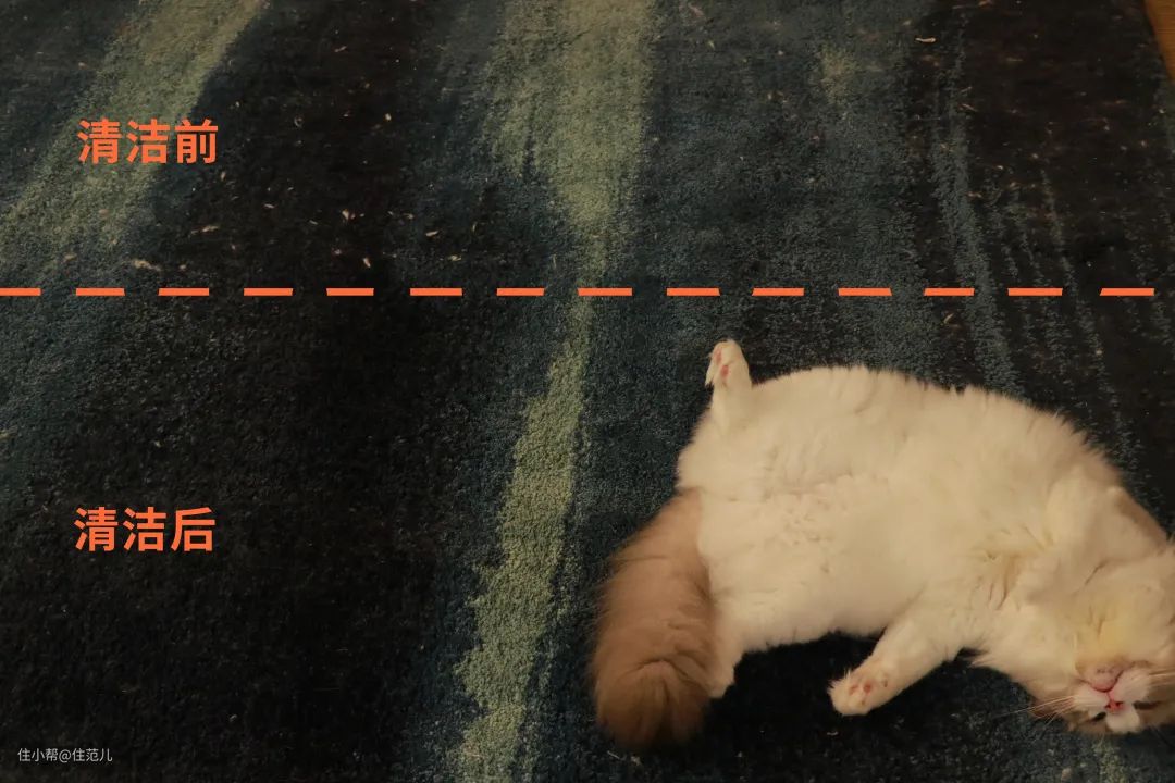 当湿垃圾在地毯上,尤其带有油污或颜色很深时,需要多几个来回,或者加点地毯清洁剂,就能减少很多手动擦洗的麻烦。