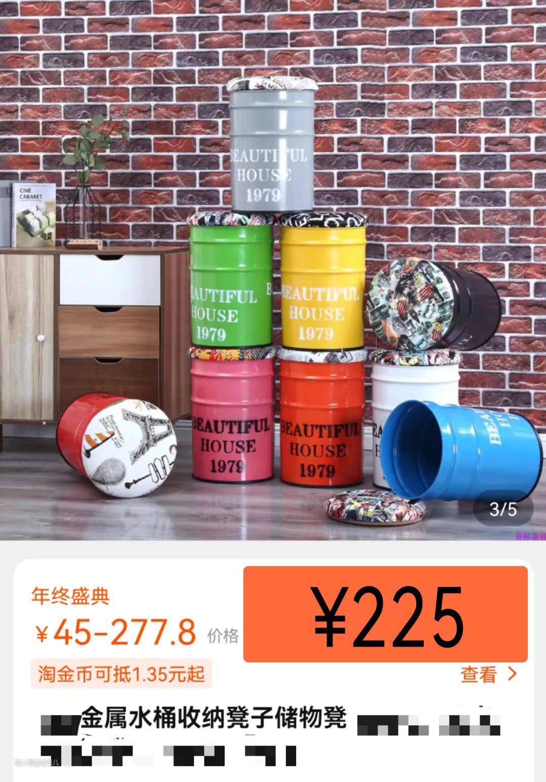 最常见的就是水桶凳,这鲜艳的颜色,跟其他家具确实难搭配,我给的替代方案是搜“化工纸板桶”。