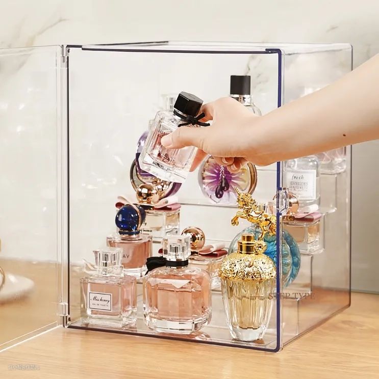 台阶很窄,100ml的很难放下,放也只能放一层;加了防尘的罩子反而鸡肋,拿取后面几排的香水,必须小心翼翼,轻轻一碰前面的全掉下来了。