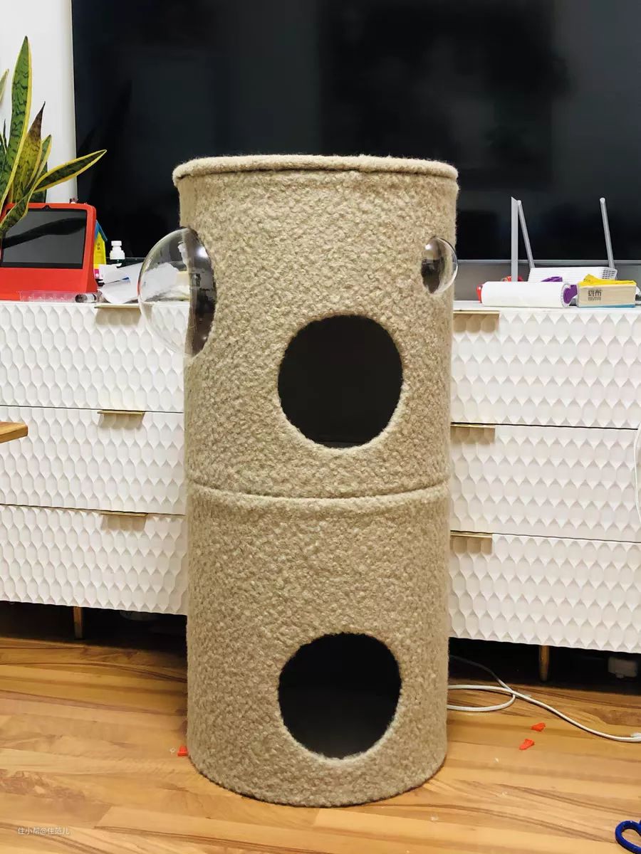 还有买家开发的新用法:在表面掏个洞,再包上毛茸茸的布料,就能成为家里猫主子的“专属订制款猫窝”。