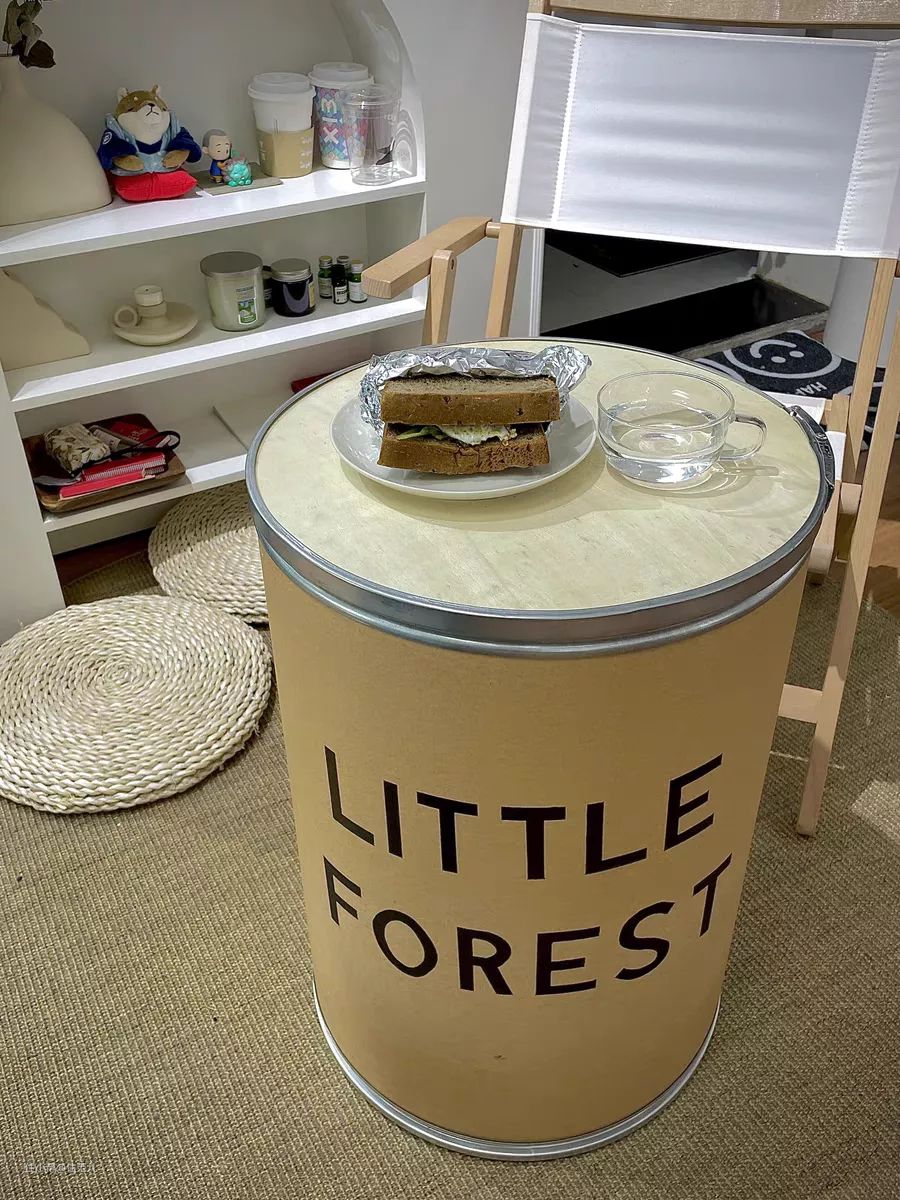 木板盖子,桶身能画画或者贴贴纸来装饰,容量很大,不常用的东西方便隐藏收纳;除了当储物凳,用作茶几、床头柜都可以,比正儿八经的储物柜便宜不少。