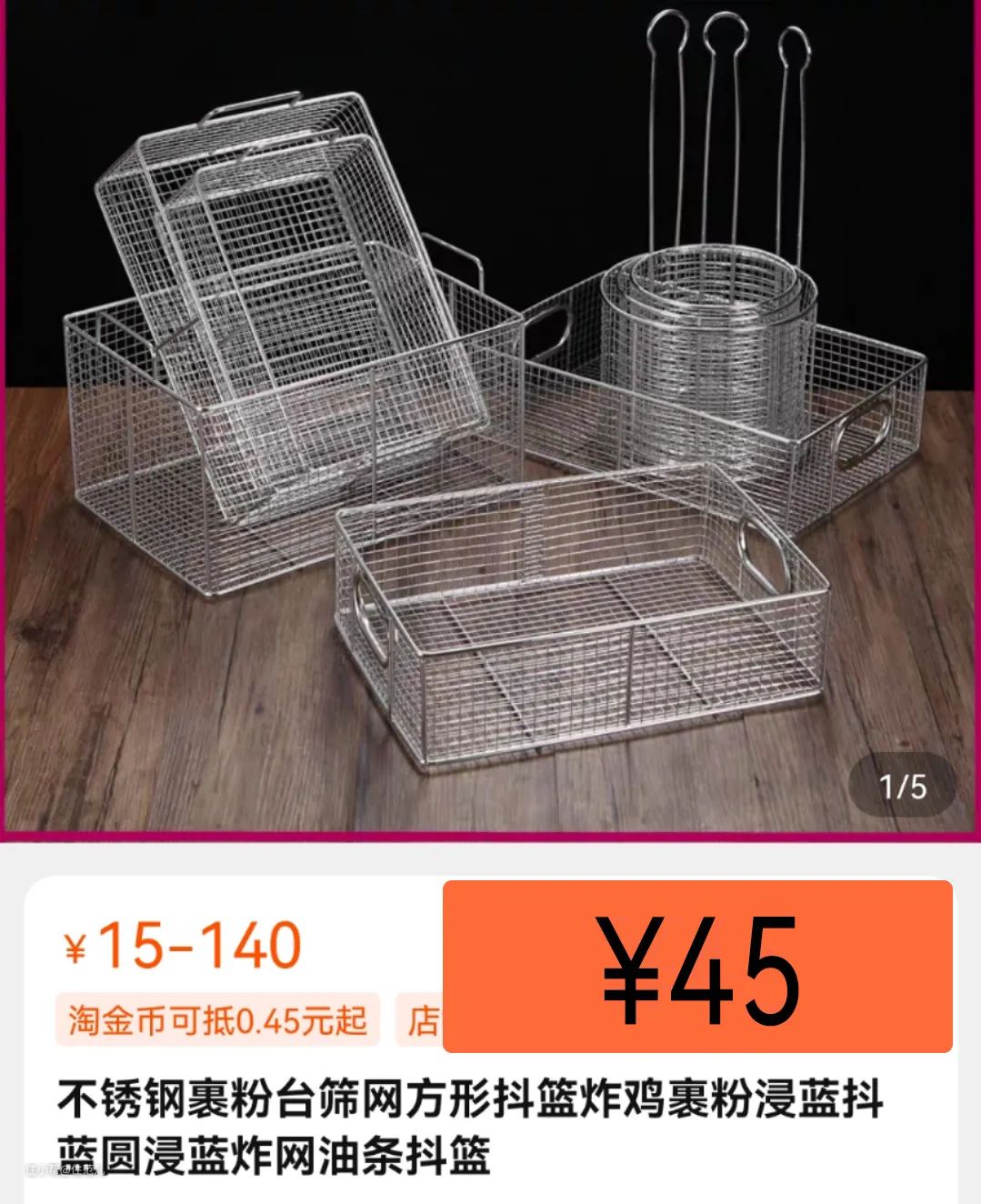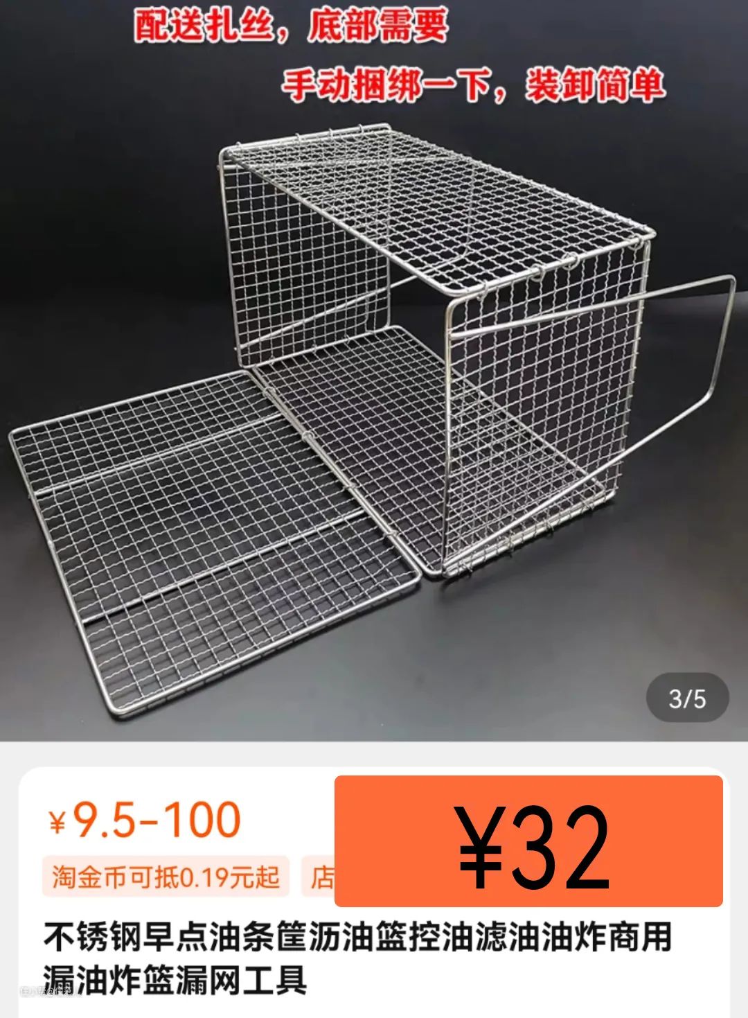 但直接搜“油条框”,同样不锈钢材质,网是304,框架是201,尺寸35×25×10cm,价格才45元!!!