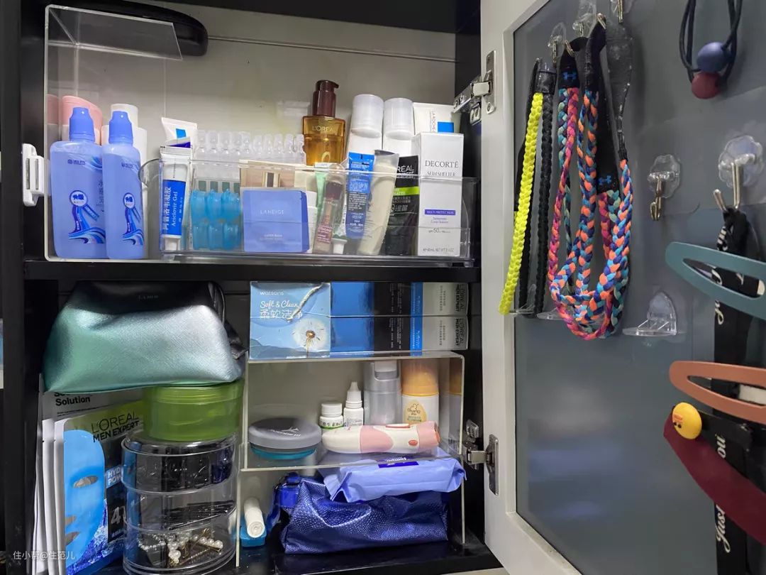 展示盲盒、玩具和茶具,镜柜、鞋柜不能合理收纳的时候,放在里面分层放置护肤品,好用又便宜。