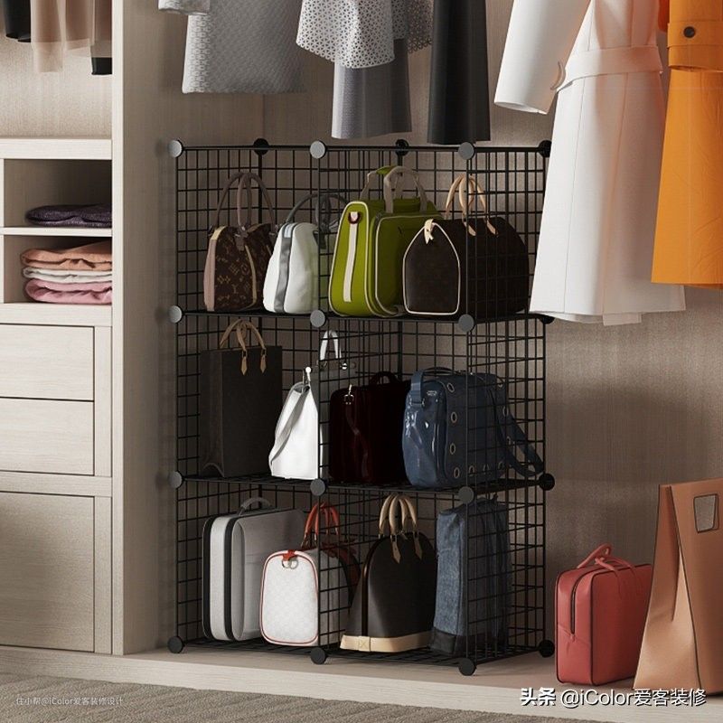 网格收纳架,放在衣柜内可以打造一个包包收纳架,好拿也好放。比较适合皮包。