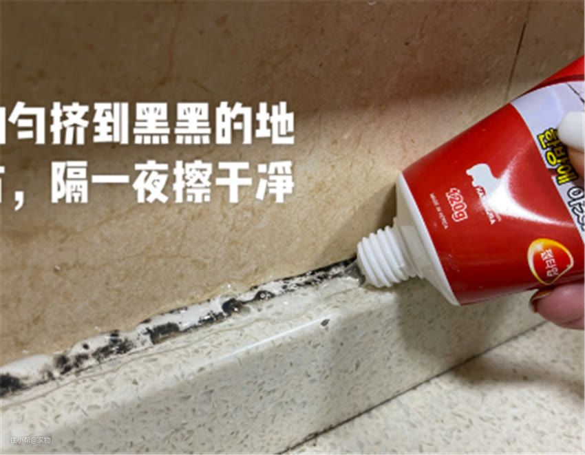 2)备上除霉啫喱;这种啫喱无色无味,安全无污染;涂在发霉的地方,过一晚上,第二天霉菌基本就自己脱落;再用抹布擦一擦,很容易就清除掉了。