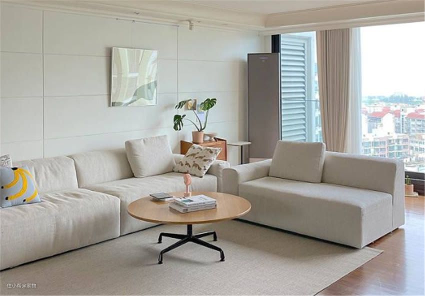 但要注意的是,布艺沙发一定要选择可拆卸的,方便清洗;否则时间久了,表面积攒的污垢很难去除掉。