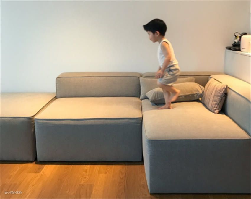 布艺沙发设计感强,摆放在客厅美观漂亮,质地柔软,孩子们也爱在上面来回跑跳,玩耍。